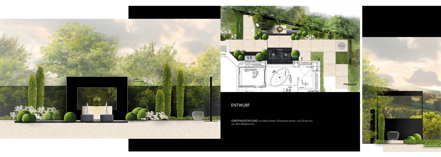 Villa 3 stellt eine Umbausituation im Bestand und nach den baulichen Veränderungen dar. Innenarchitektur, Fassaden und Außenanlagen wurden hierbei in einer harmonischen Gesamtgestaltung betrachtet.